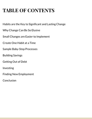 In this 20+ page digital download we uncover effective strategies or baby steps for making positive changes in several aspects of your financial future. Baby steps are the answer.Small changes implemented one at a time are a proven way to create significant results that stick.